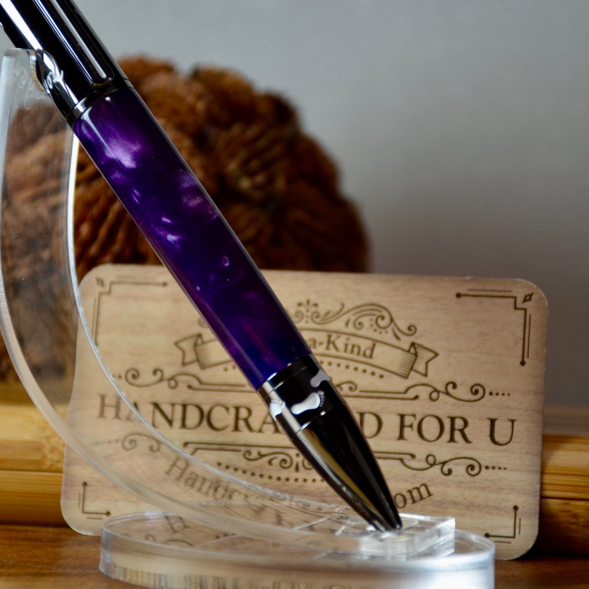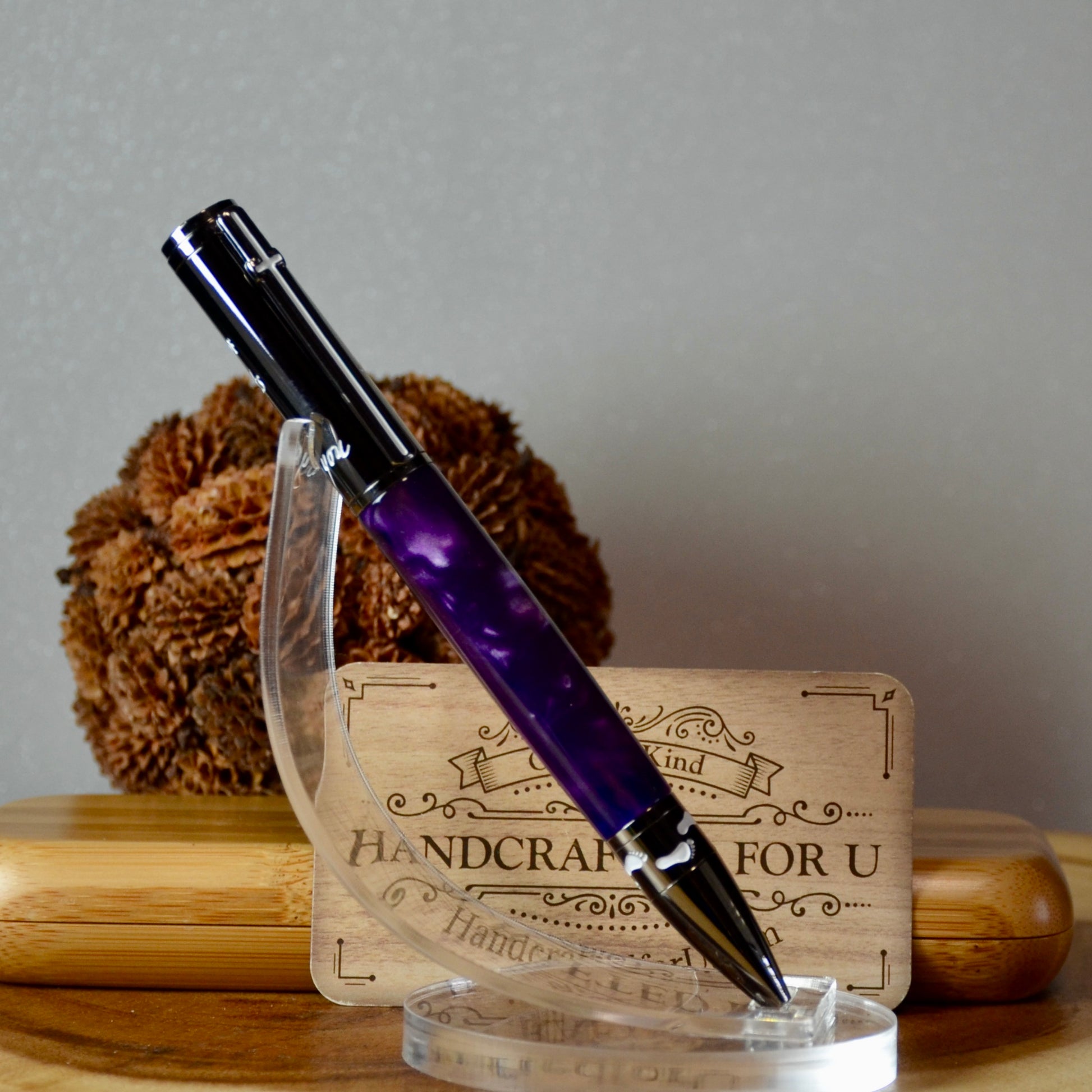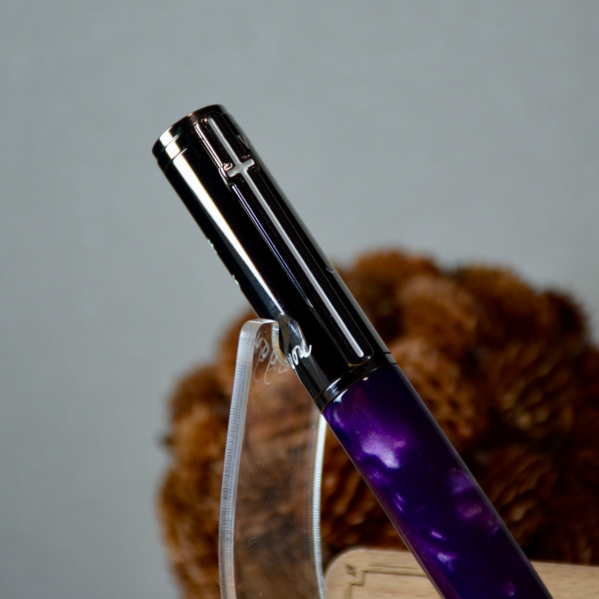 Looking for a thoughtful and unique gift? Look no further than Foot Prints in the Sand - a beautiful combination of gun metal and Aqua Bright Purple and Silver acrylic. Give the gift of tranquility and reflection with this charming piece. Perfect for any occasion, show your loved ones how much you care with this special gift. Included is a replacement parker refill and a soft leather pouch for storage.